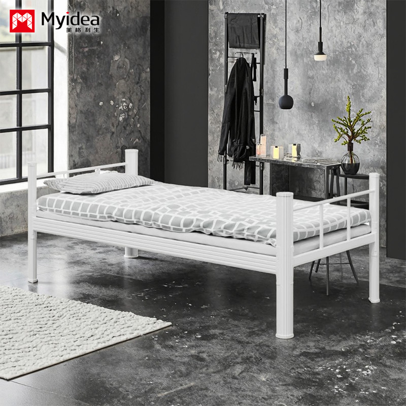 ห้องนอนอพาร์ทเมนต์เรียบง่าย เตียงเดี่ยว ท่อเทคโนโลยีใหม่หนา เตียงห้องพักนักเรียน เตียงกรอบเหล็กชั้นเดียว