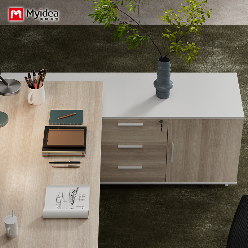 โต๊ะทำงานผู้จัดการสมัยใหม่สำหรับสำนักงานอิสระ โต๊ะหัวหน้างานขนาดใหญ่ การออกแบบตู้เก็บของเพื่อเพิ่มบรรยากาศสำหรับสำนักงาน