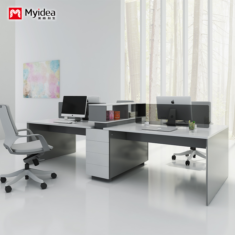 โต๊ะทำงานสำหรับพนักงาน 4 คน พร้อมลิ้นชักเก็บของ โต๊ะทำงานสำนักงานทาสีขาวมันเงา