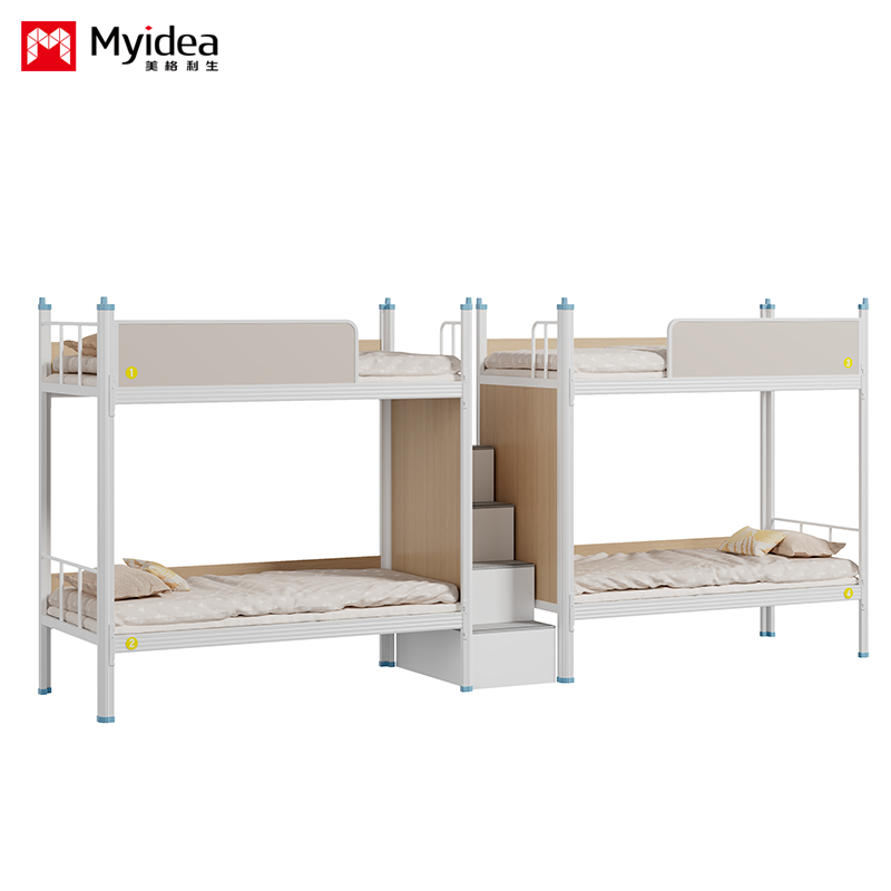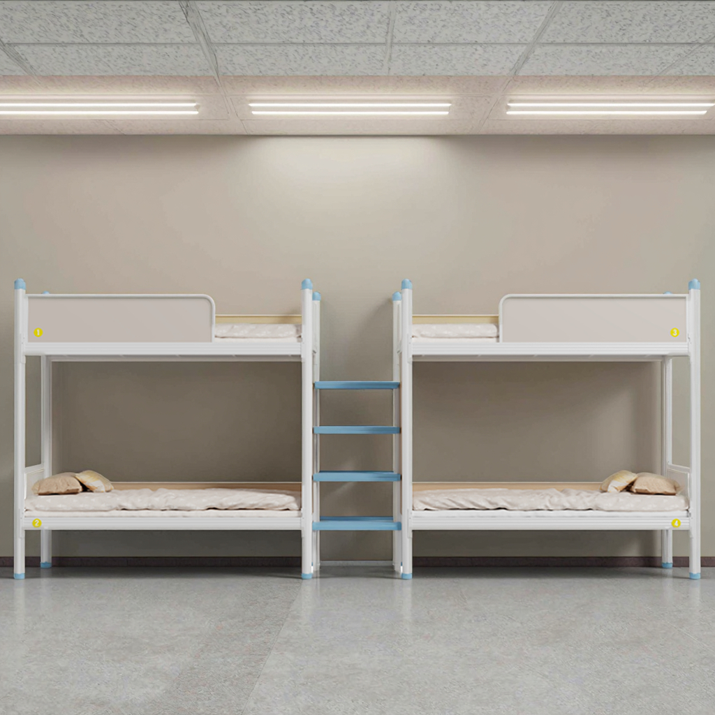 เตียงสี่คนหนา, หอพักนักเรียน, เตียงสองชั้นมั่นคงสำหรับนักเรียน, บันได, เตียงหอพักพนักงานหลายคน