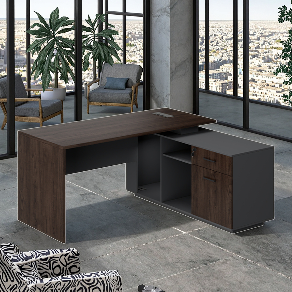 ตู้เก็บคอมพิวเตอร์สํานักงานผู้บริหาร การออกแบบแผ่นไม้ที่ทันสมัย การก่อสร้างที่ทนทานและเป็นมิตรต่อสิ่งแวดล้อม การประกอบงานที่จําเป็น