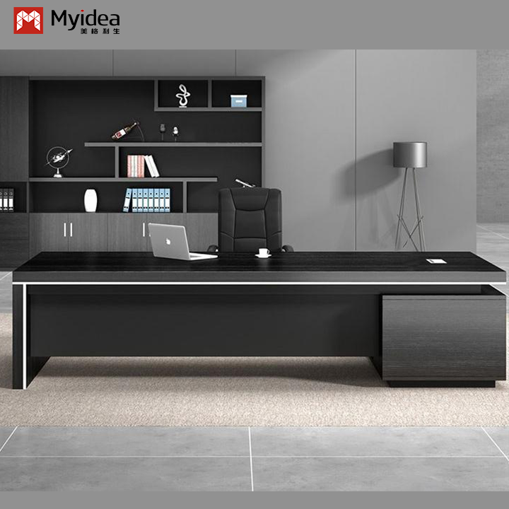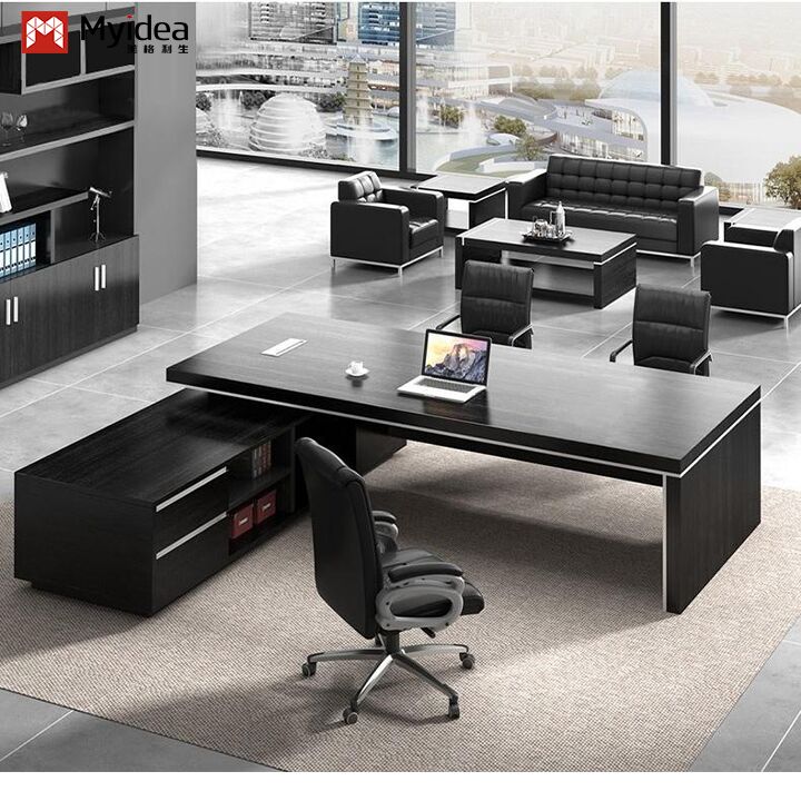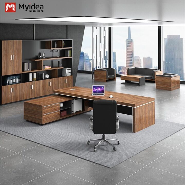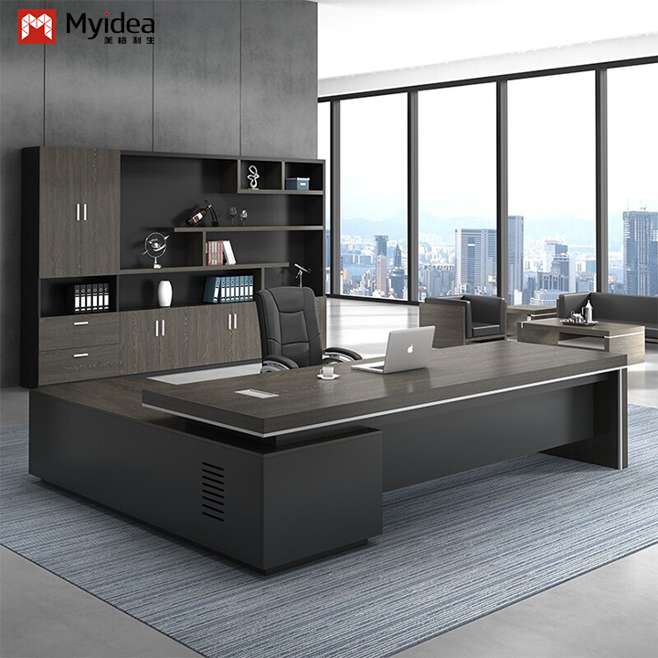 โต๊ะคอมพิวเตอร์ผู้บริหารรูปตัวแอลที่เป็นมิตรต่อสิ่งแวดล้อมพร้อมตู้เก็บของขนาดใหญ่