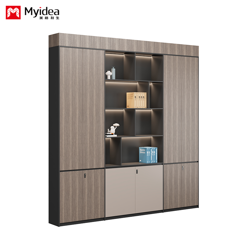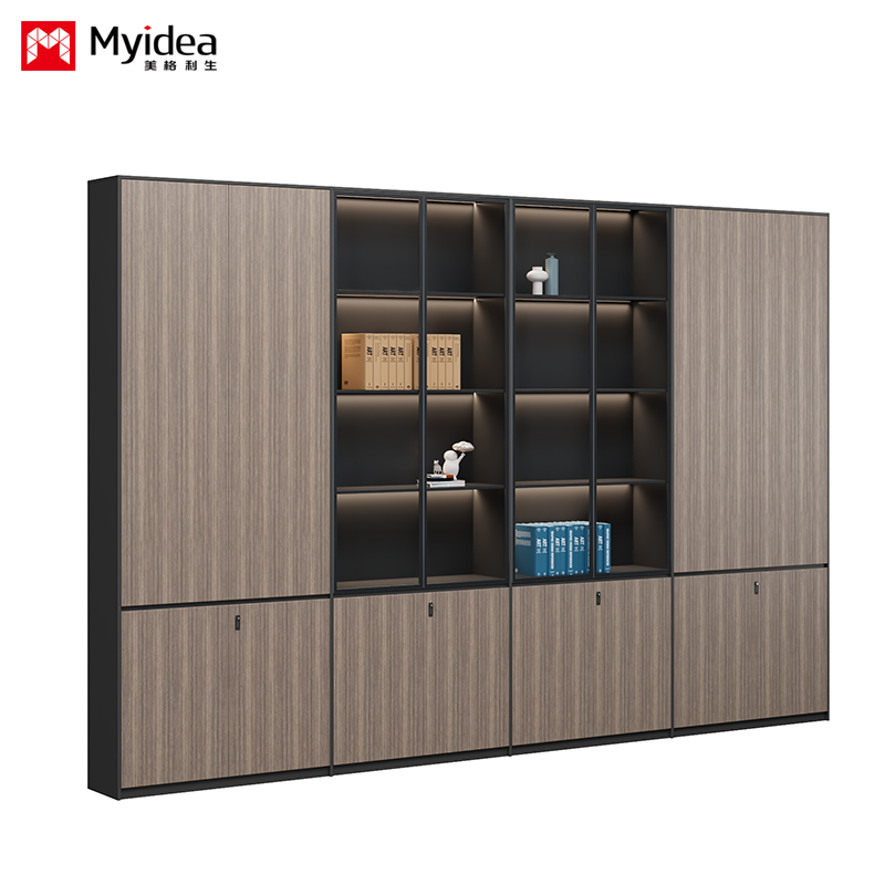 Glass Door Filing Cabinet, Office Back Cabinet with Light Strip Filing Cabinet